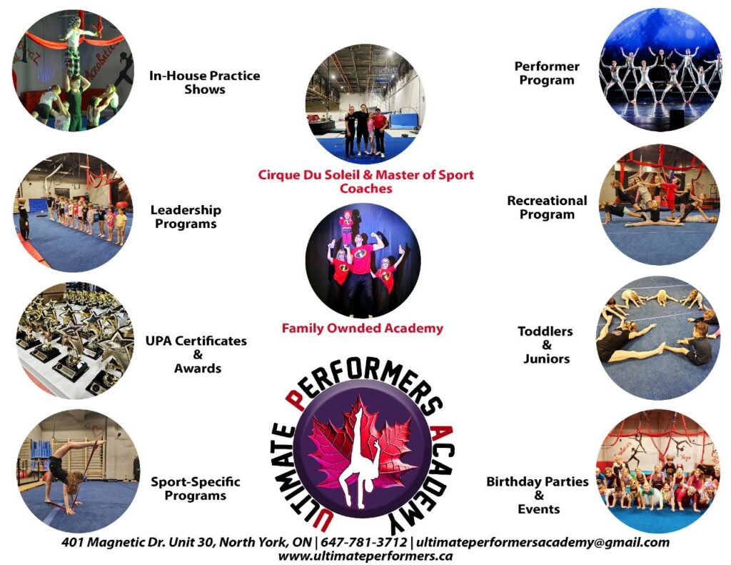 At Ultimate Performers Academy, our mission is to prioritize the physical and mental health of each individual and their development through the art of acrobatics, calisthenics, dance, storytelling, theatre, comedy, and circus arts.